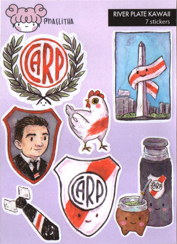 PLANCHA DE 7 STICKERS TROQUELADOS SOBRE RIVER PLATE ESTILO KAWAII.