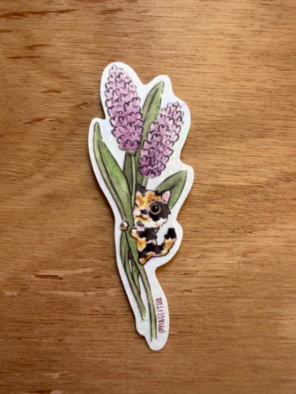 STICKER DE GATA Y LAVANDA