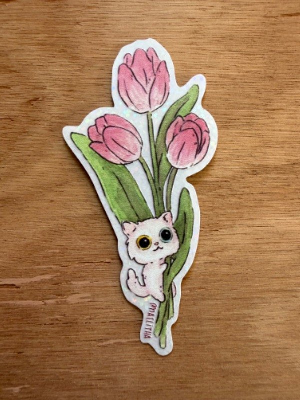 STICKER DE GATA Y TULIP´AN