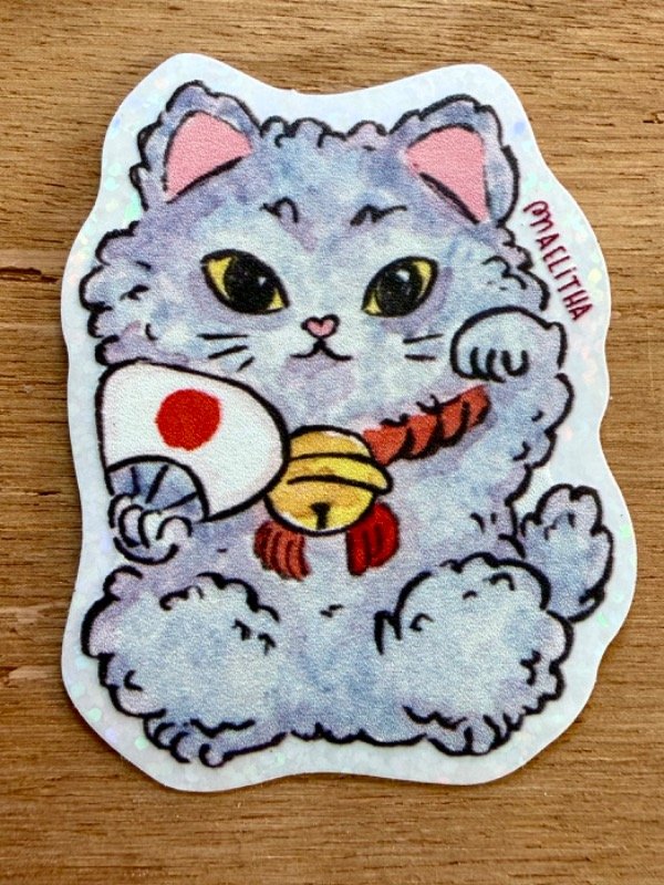 STICKER DE MANEKI NEKO CON ABANICO.
